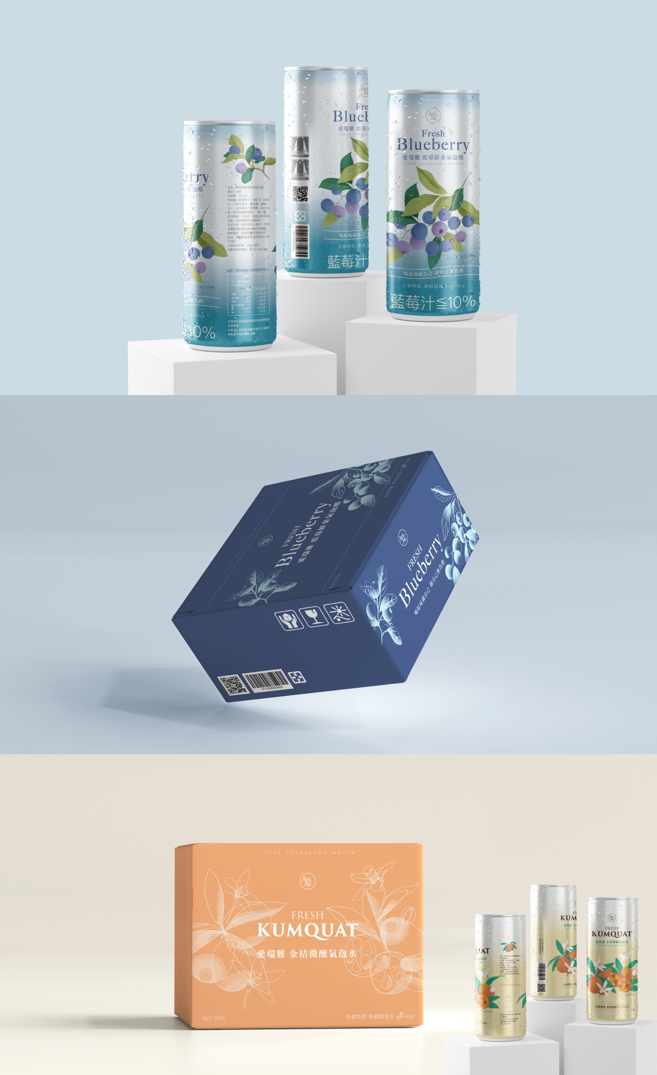 Two flavors of fruit sparkling water beverages, they tried to catch the women who care about healthy choices of food. Light-calorie, elegant patterns, and slim can shapes are all we tended to approach.